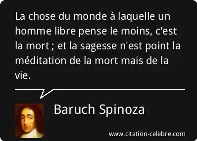 La chose du monde à laquelle un homme libre pense le moins, c'est la mort ; et la sagesse n'est point la méditation de la mort mais de la vie.