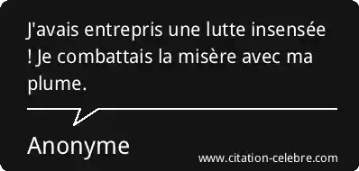 J'avais entrepris une lutte insensée ! Je combattais la misère avec ma plume.