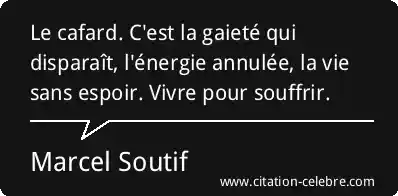 Le cafard. C'est la gaieté qui disparaît, l'énergie annulée, la vie sans espoir. Vivre pour souffrir.