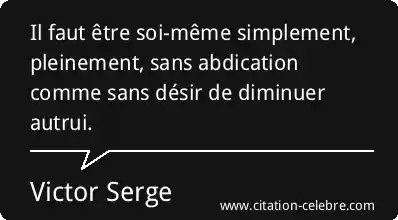 Il faut être soi-même simplement, pleinement, sans abdication comme sans désir de diminuer autrui.