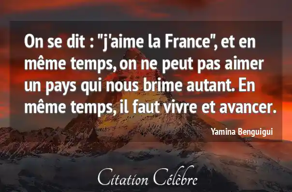 On se dit : "j'aime la France", et en même temps, on ne peut pas aimer un pays qui nous brime autant. En même temps, il faut vivre et avancer.