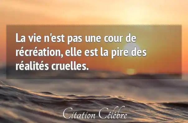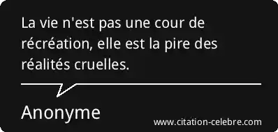 La vie n'est pas une cour de récréation, elle est la pire des réalités cruelles.