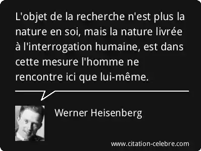 L'objet de la recherche n'est plus la nature en soi, mais la nature livrée à l'interrogation humaine, est dans cette mesure l'homme ne rencontre ici que lui-même.