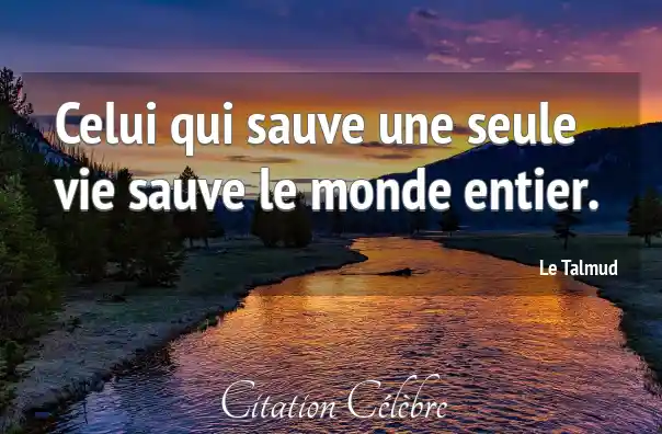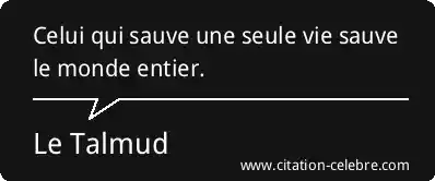 Celui qui sauve une seule vie sauve le monde entier.