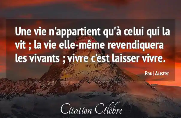 Une vie n'appartient qu'à celui qui la vit ; la vie elle-même revendiquera les vivants ; vivre c'est laisser vivre.