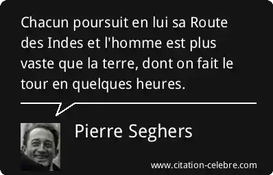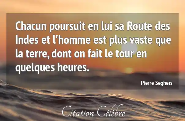 Chacun poursuit en lui sa Route des Indes et l'homme est plus vaste que la terre, dont on fait le tour en quelques heures.
