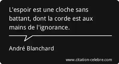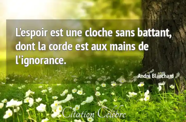 L'espoir est une cloche sans battant, dont la corde est aux mains de l'ignorance.