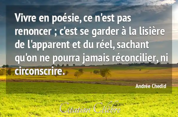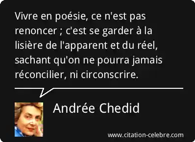 Vivre en poésie, ce n'est pas renoncer ; c'est se garder à la lisière de l'apparent et du réel, sachant qu'on ne pourra jamais réconcilier, ni circonscrire.