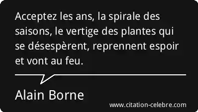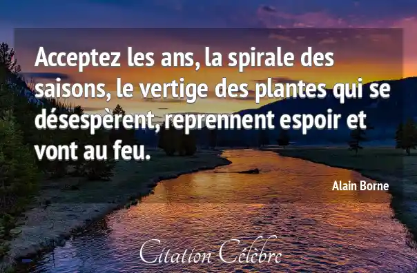 Acceptez les ans, la spirale des saisons, le vertige des plantes qui se désespèrent, reprennent espoir et vont au feu.