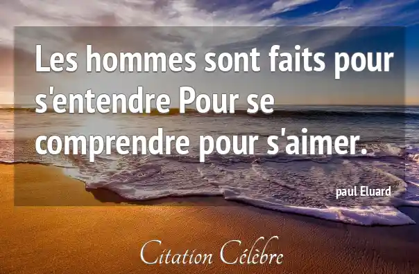 Les hommes sont faits pour s'entendre Pour se comprendre pour s'aimer.