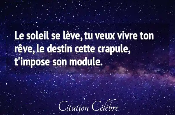 Le soleil se lève, tu veux vivre ton rêve, le destin cette crapule, t'impose son module.