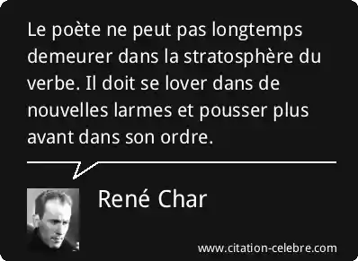 Le poète ne peut pas longtemps demeurer dans la stratosphère du verbe. Il doit se lover dans de nouvelles larmes et pousser plus avant dans son ordre.