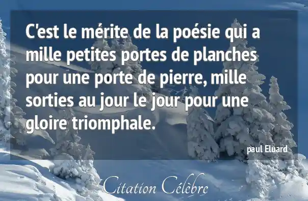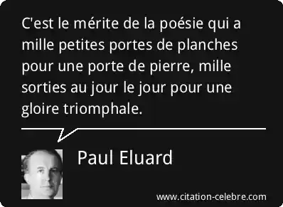 C'est le mérite de la poésie qui a mille petites portes de planches pour une porte de pierre, mille sorties au jour le jour pour une gloire triomphale.