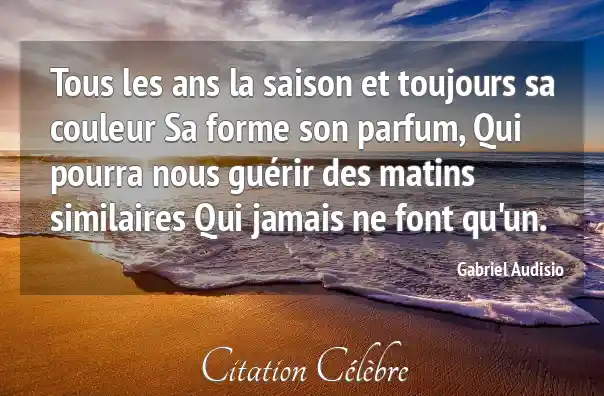 Tous les ans la saison et toujours sa couleur Sa forme son parfum, Qui pourra nous guérir des matins similaires Qui jamais ne font qu'un.