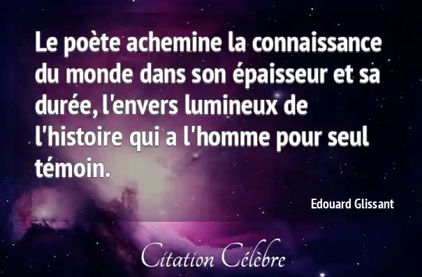 Le poète achemine la connaissance du monde dans son épaisseur et sa durée, l'envers lumineux de l'histoire qui a l'homme pour seul témoin.