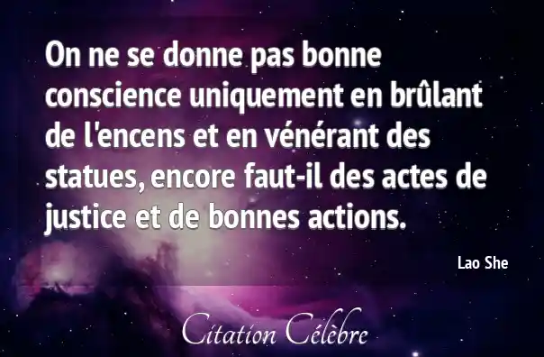 On ne se donne pas bonne conscience uniquement en brûlant de l'encens et en vénérant des statues, encore faut-il des actes de justice et de bonnes actions.