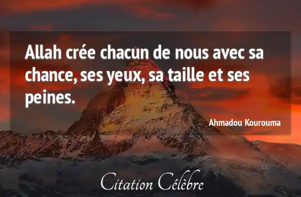 Allah crée chacun de nous avec sa chance, ses yeux, sa taille et ses peines.