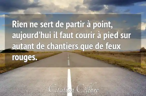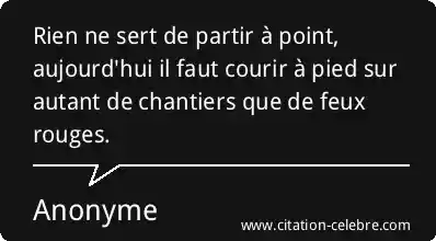 Rien ne sert de partir à point, aujourd'hui il faut courir à pied sur autant de chantiers que de feux rouges.