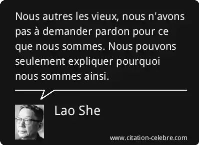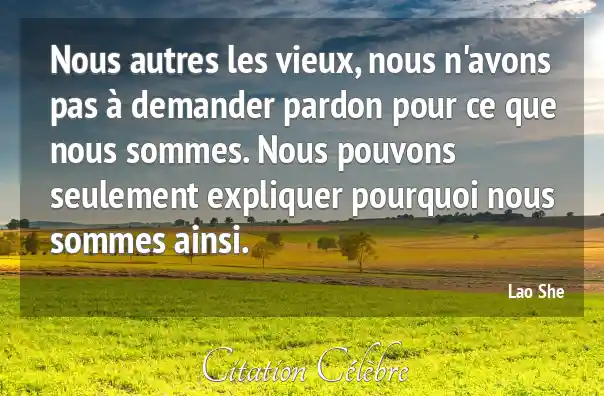Nous autres les vieux, nous n'avons pas à demander pardon pour ce que nous sommes. Nous pouvons seulement expliquer pourquoi nous sommes ainsi.