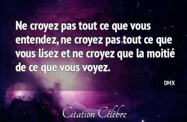 Ne croyez pas tout ce que vous entendez, ne croyez pas tout ce que vous lisez et ne croyez que la moitié de ce que vous voyez.