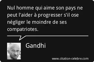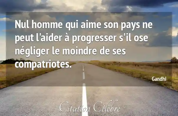 Nul homme qui aime son pays ne peut l'aider à progresser s'il ose négliger le moindre de ses compatriotes.