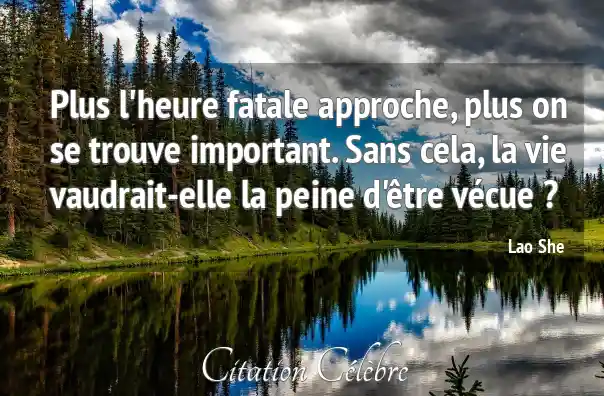 Plus l'heure fatale approche, plus on se trouve important. Sans cela, la vie vaudrait-elle la peine d'être vécue ?