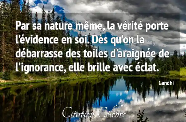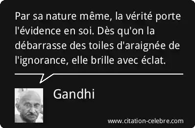 Par sa nature même, la vérité porte l'évidence en soi. Dès qu'on la débarrasse des toiles d'araignée de l'ignorance, elle brille avec éclat.