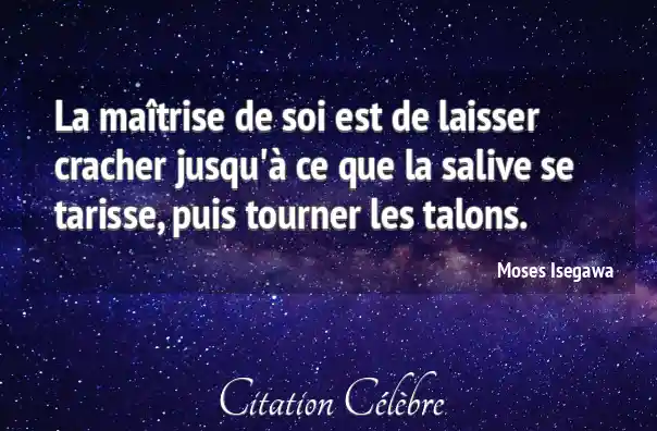 La maîtrise de soi est de laisser cracher jusqu'à ce que la salive se tarisse, puis tourner les talons.