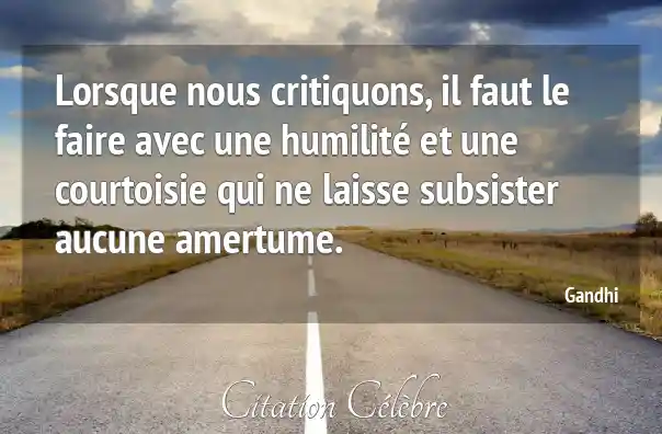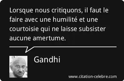 Lorsque nous critiquons, il faut le faire avec une humilité et une courtoisie qui ne laisse subsister aucune amertume.