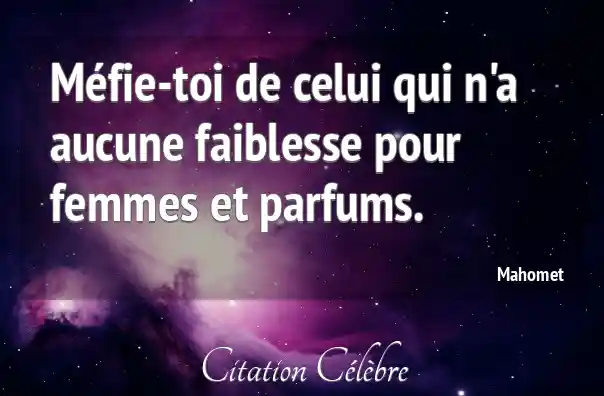 Méfie-toi de celui qui n'a aucune faiblesse pour femmes et parfums.