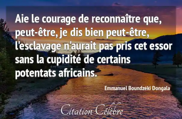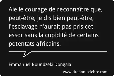 Aie le courage de reconnaître que, peut-être, je dis bien peut-être, l'esclavage n'aurait pas pris cet essor sans la cupidité de certains potentats africains.