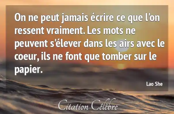 On ne peut jamais écrire ce que l'on ressent vraiment. Les mots ne peuvent s'élever dans les airs avec le coeur, ils ne font que tomber sur le papier.