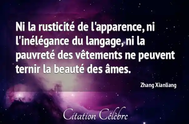 Ni la rusticité de l'apparence, ni l'inélégance du langage, ni la pauvreté des vêtements ne peuvent ternir la beauté des âmes.