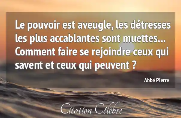 Le pouvoir est aveugle, les détresses les plus accablantes sont muettes... Comment faire se rejoindre ceux qui savent et ceux qui peuvent ?