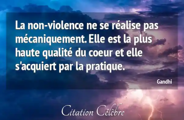 La non-violence ne se réalise pas mécaniquement. Elle est la plus haute qualité du coeur et elle s'acquiert par la pratique.
