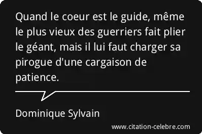 Quand le coeur est le guide, même le plus vieux des guerriers fait plier le géant, mais il lui faut charger sa pirogue d'une cargaison de patience.