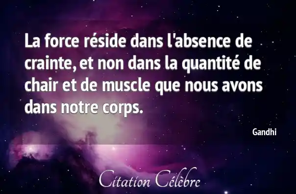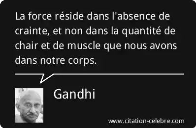 Citation Gandhi force : La force réside dans l'absence de crainte, et non dans...