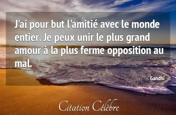 J'ai pour but l'amitié avec le monde entier. Je peux unir le plus grand amour à la plus ferme opposition au mal.