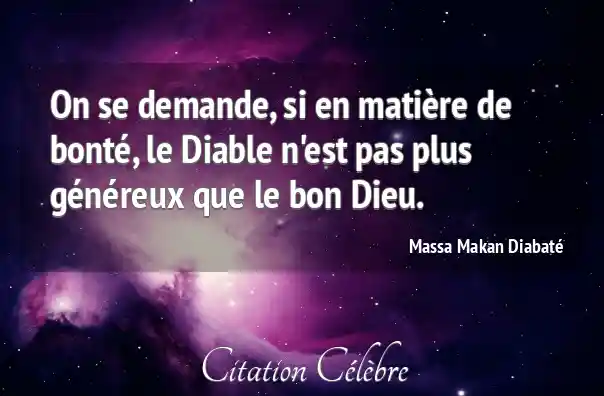On se demande, si en matière de bonté, le Diable n'est pas plus généreux que le bon Dieu.