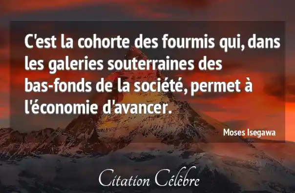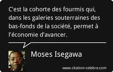 C'est la cohorte des fourmis qui, dans les galeries souterraines des bas-fonds de la société, permet à l'économie d'avancer.