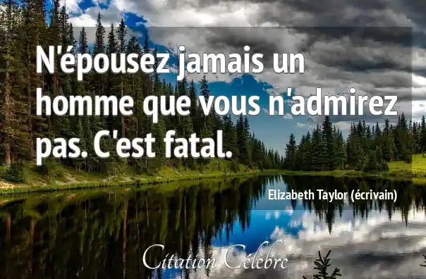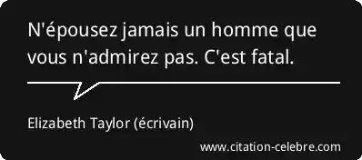 N'épousez jamais un homme que vous n'admirez pas. C'est fatal.