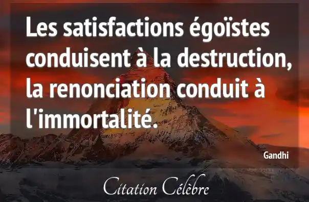 Citation Gandhi destruction : Les satisfactions égoïstes conduisent à la destruction, la renonciation conduit...