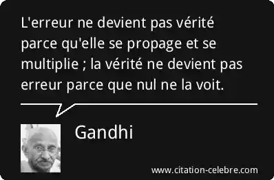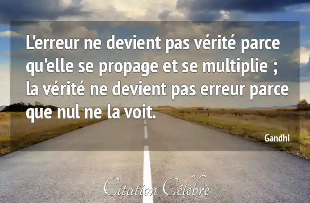 L'erreur ne devient pas vérité parce qu'elle se propage et se multiplie ; la vérité ne devient pas erreur parce que nul ne la voit.