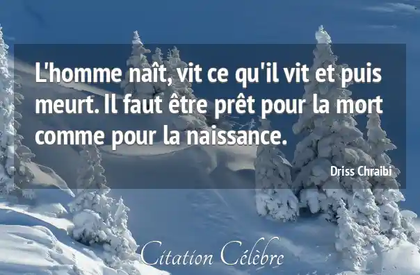 L'homme naît, vit ce qu'il vit et puis meurt. Il faut être prêt pour la mort comme pour la naissance.