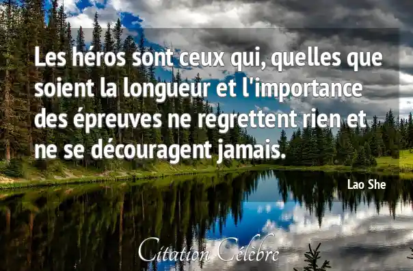 Les héros sont ceux qui, quelles que soient la longueur et l'importance des épreuves ne regrettent rien et ne se découragent jamais.
