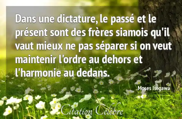 Dans une dictature, le passé et le présent sont des frères siamois qu'il vaut mieux ne pas séparer si on veut maintenir l'ordre au dehors et l'harmonie au dedans.