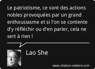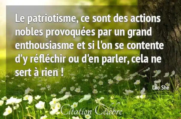 Le patriotisme, ce sont des actions nobles provoquées par un grand enthousiasme et si l'on se contente d'y réfléchir ou d'en parler, cela ne sert à rien !