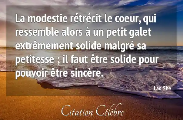 La modestie rétrécit le coeur, qui ressemble alors à un petit galet extrêmement solide malgré sa petitesse ; il faut être solide pour pouvoir être sincère.
