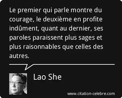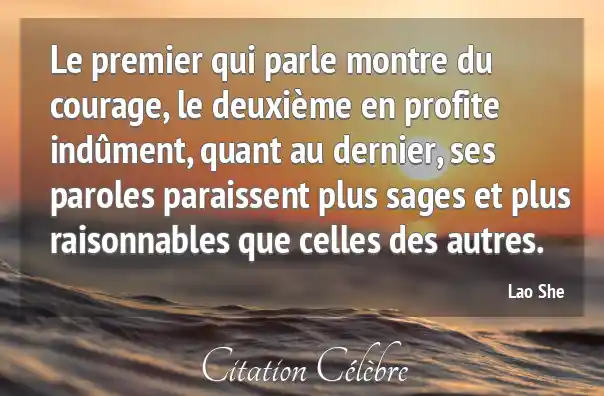 Le premier qui parle montre du courage, le deuxième en profite indûment, quant au dernier, ses paroles paraissent plus sages et plus raisonnables que celles des autres.