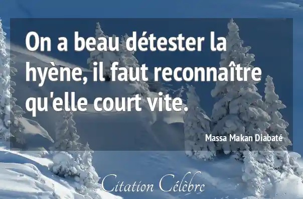 On a beau détester la hyène, il faut reconnaître qu'elle court vite.